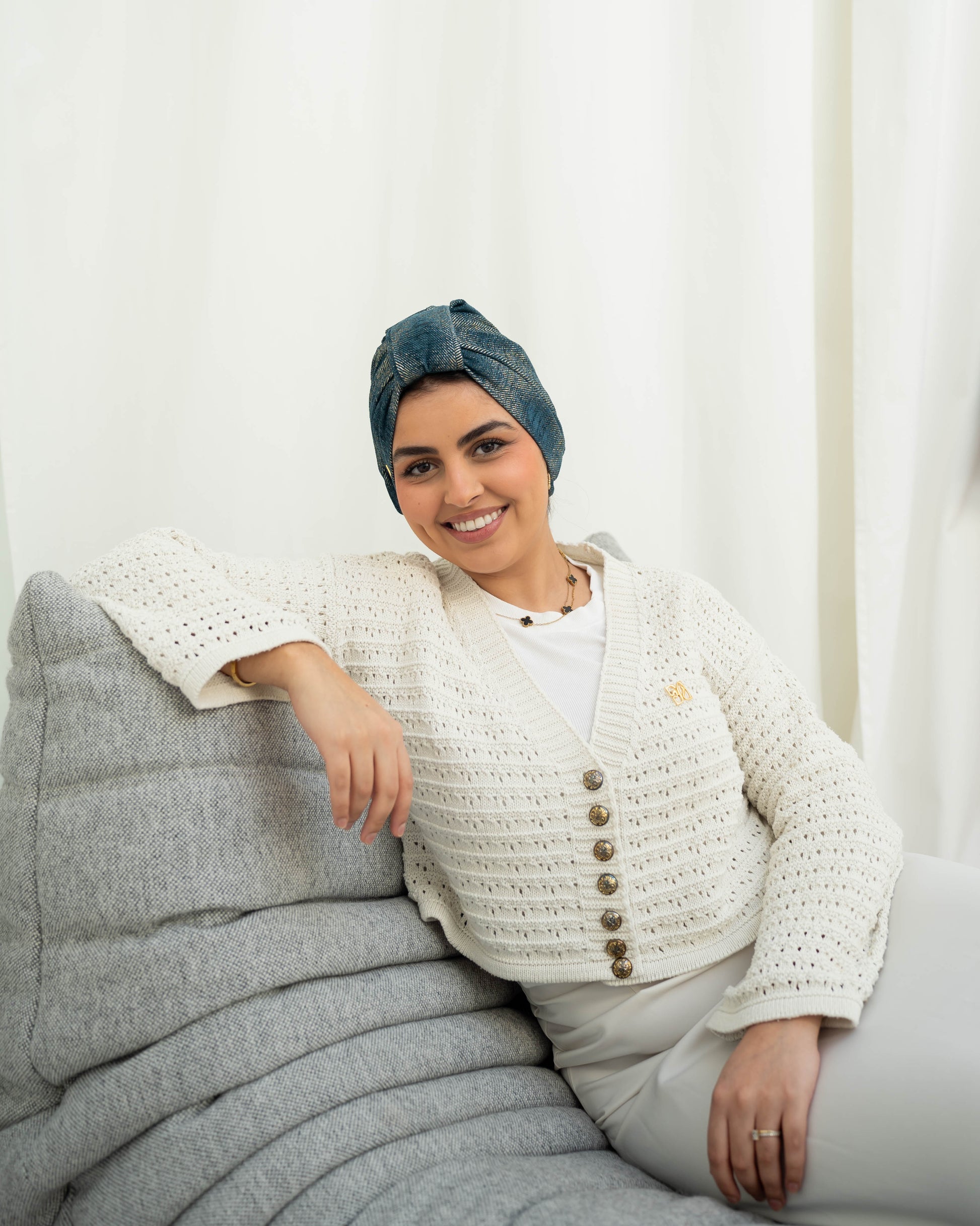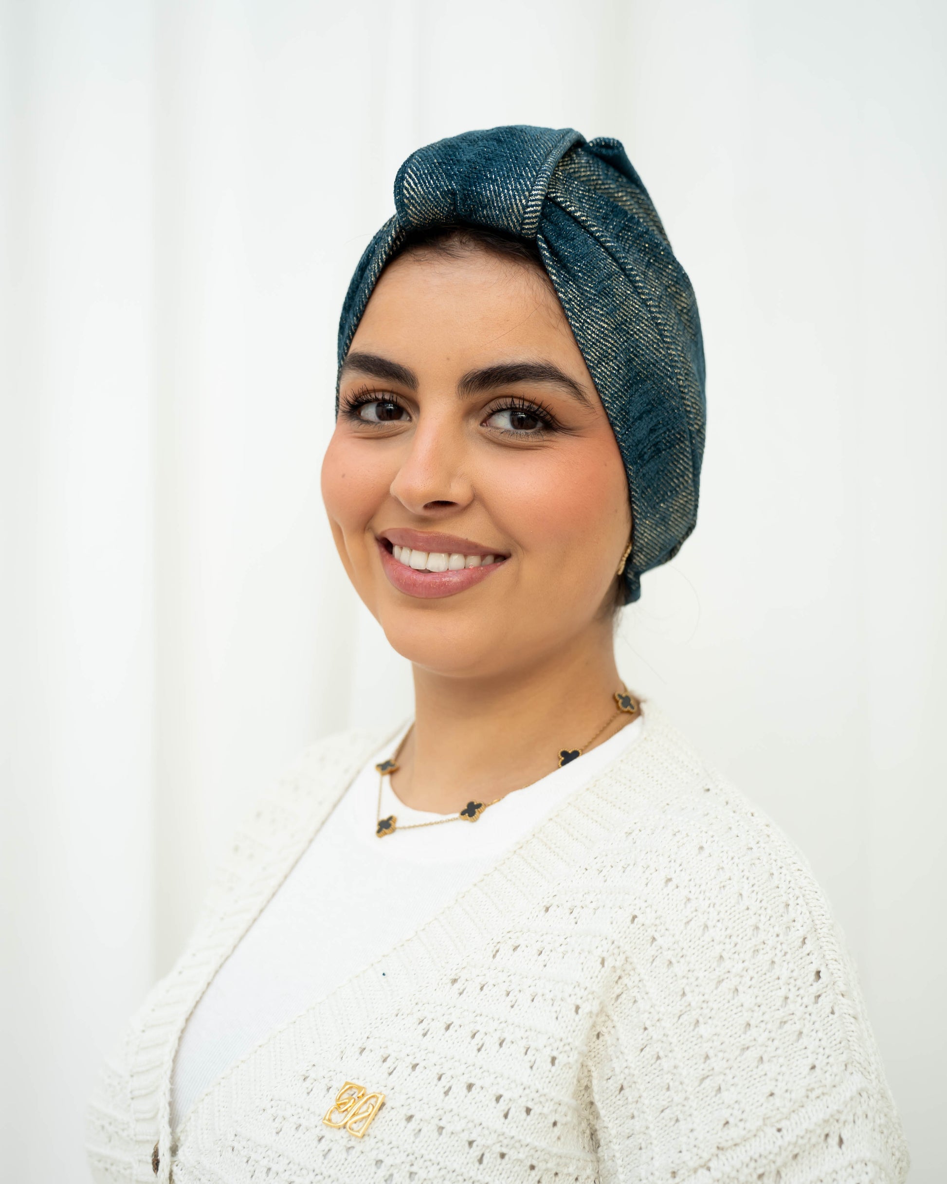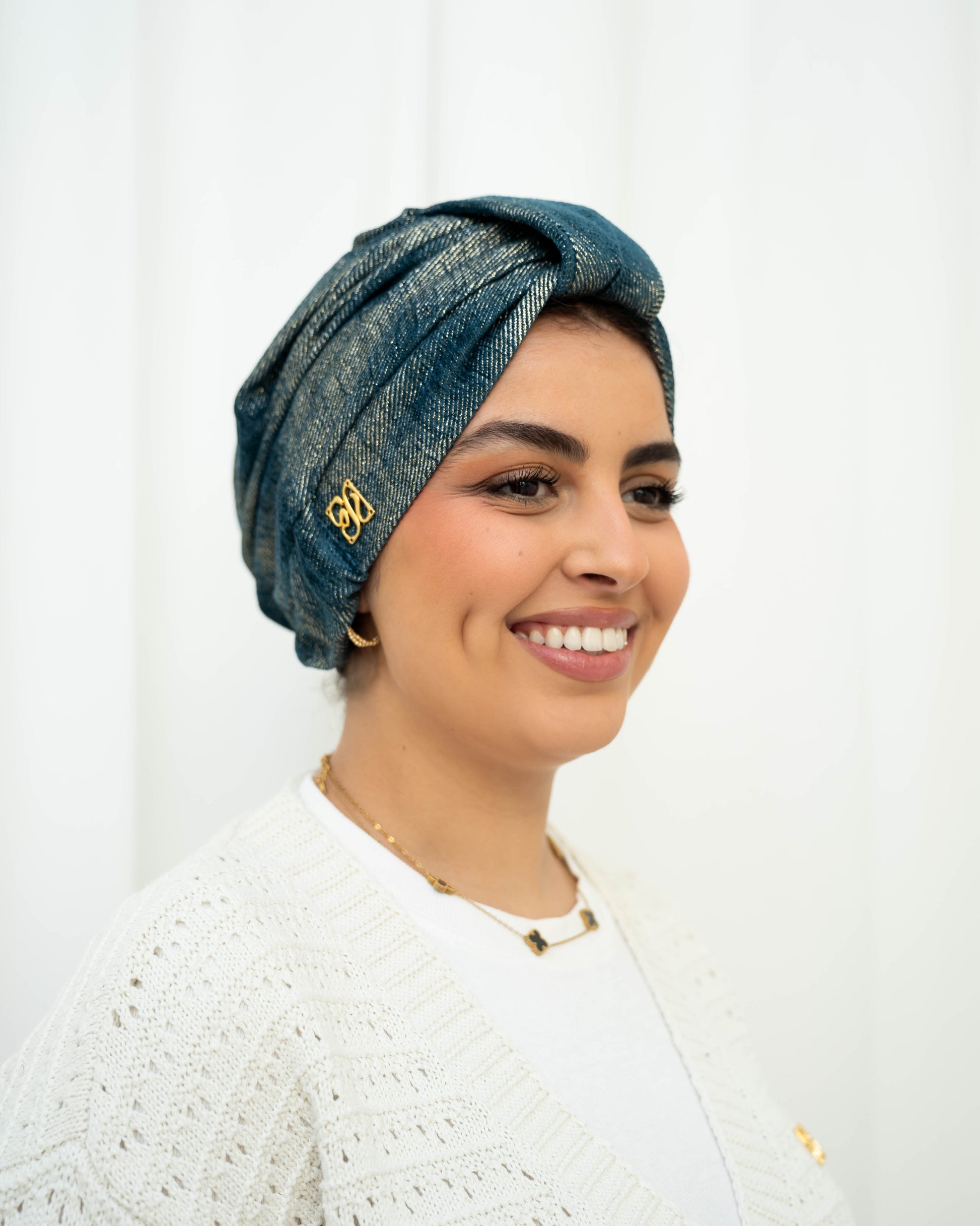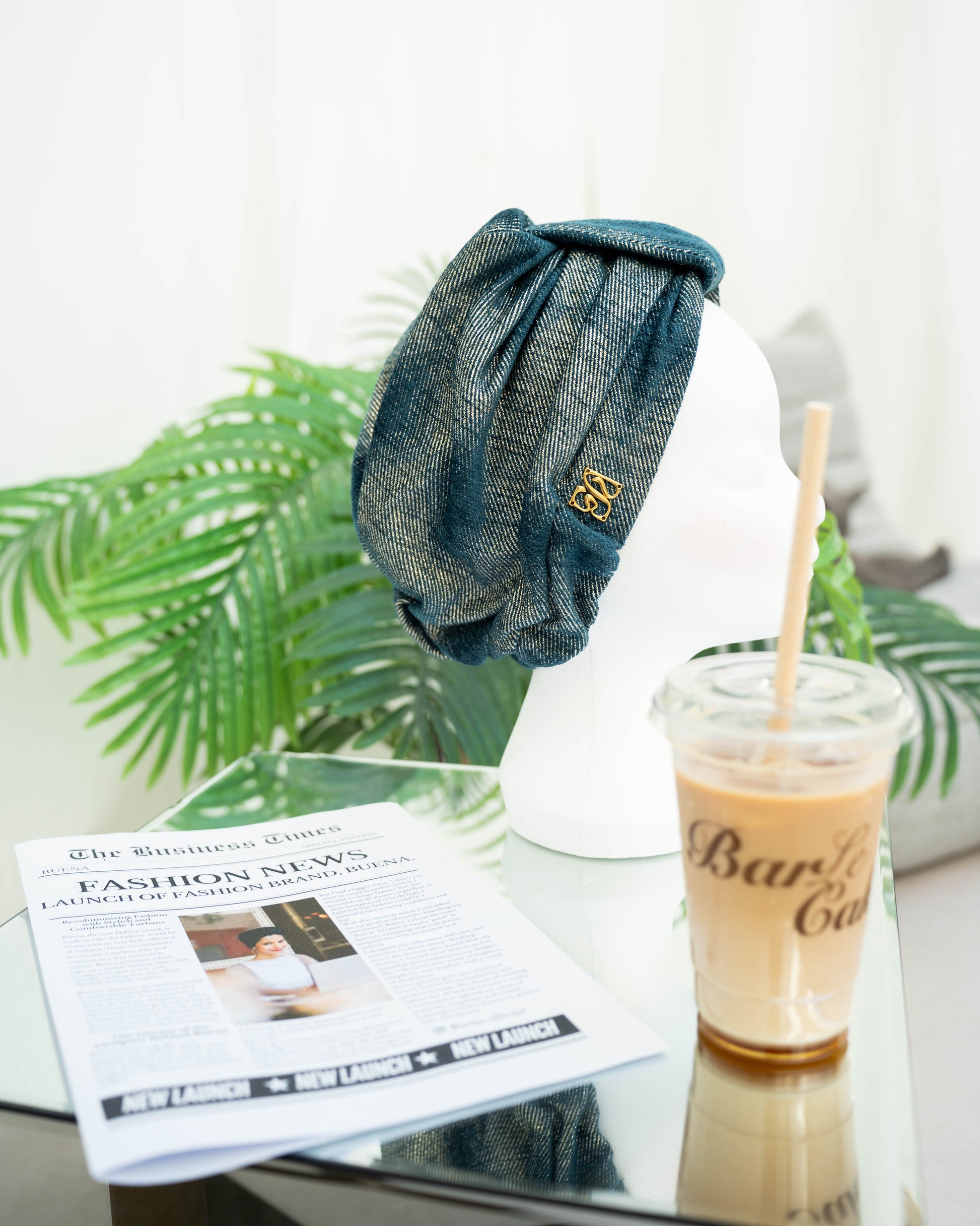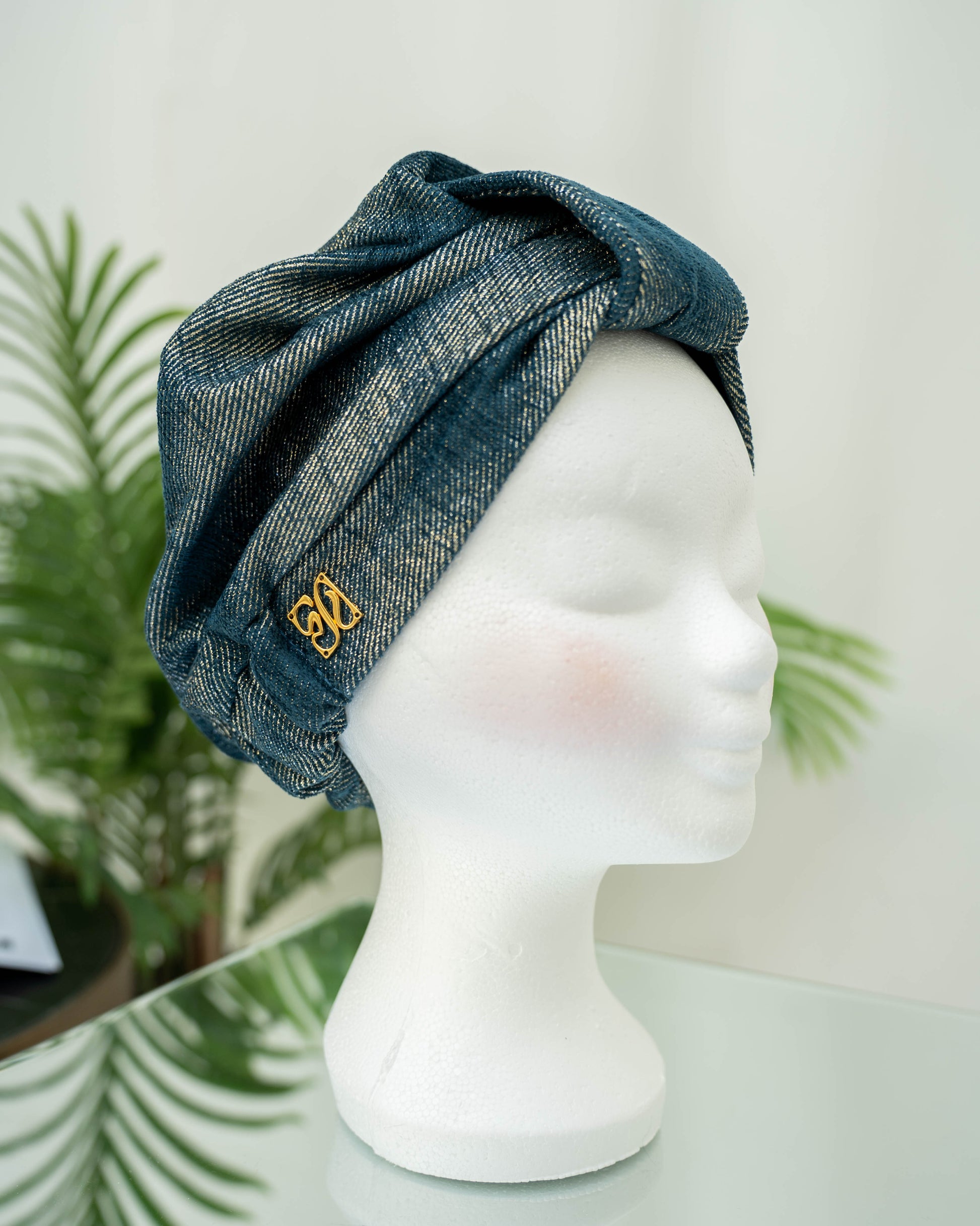 Update your wardrobe with this timeless and versatile denim turban, perfect for adding a touch of elegance to your look!