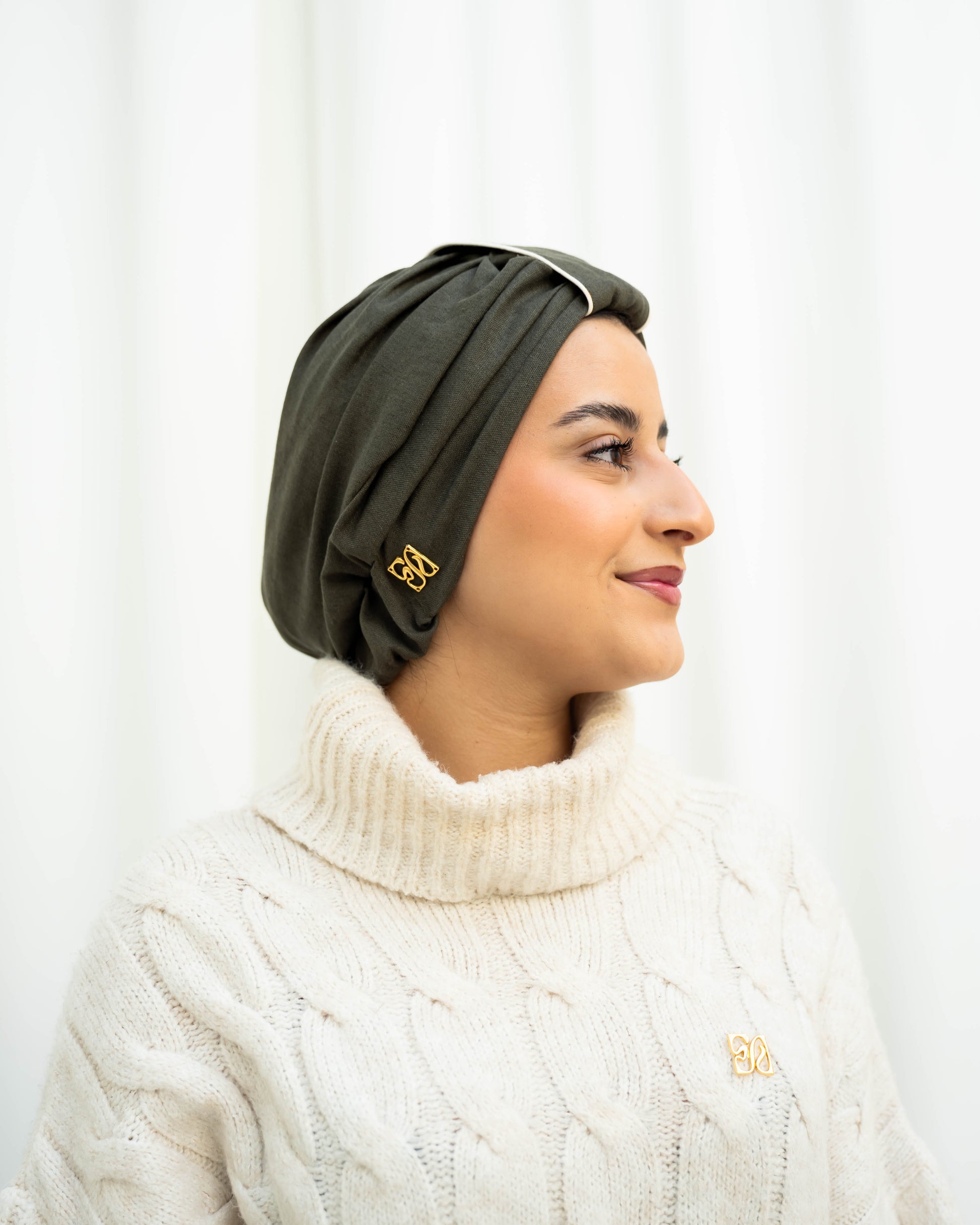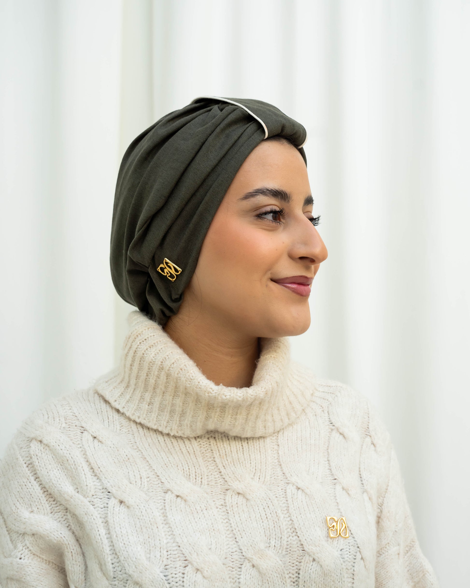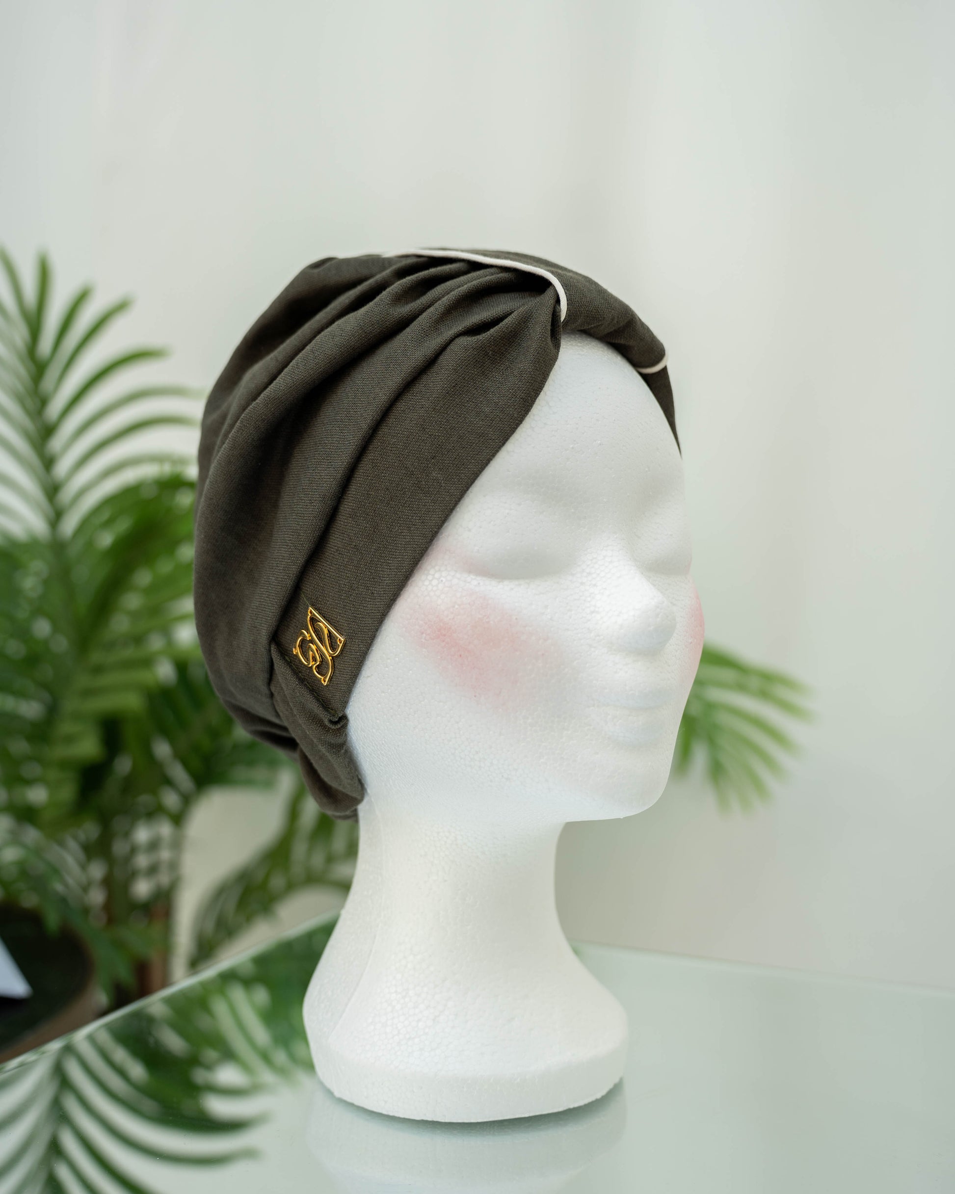 Elevate your style effortlessly with this beautifully designed taupe turban, perfect for both casual and formal occasions. The turban is crafted from high-quality, soft, and breathable fabric, ensuring all-day comfort while maintaining its sophisticated look. The deep olive green hue is timeless and versatile, while the subtle white trim adds a refined, modern detail to the design.