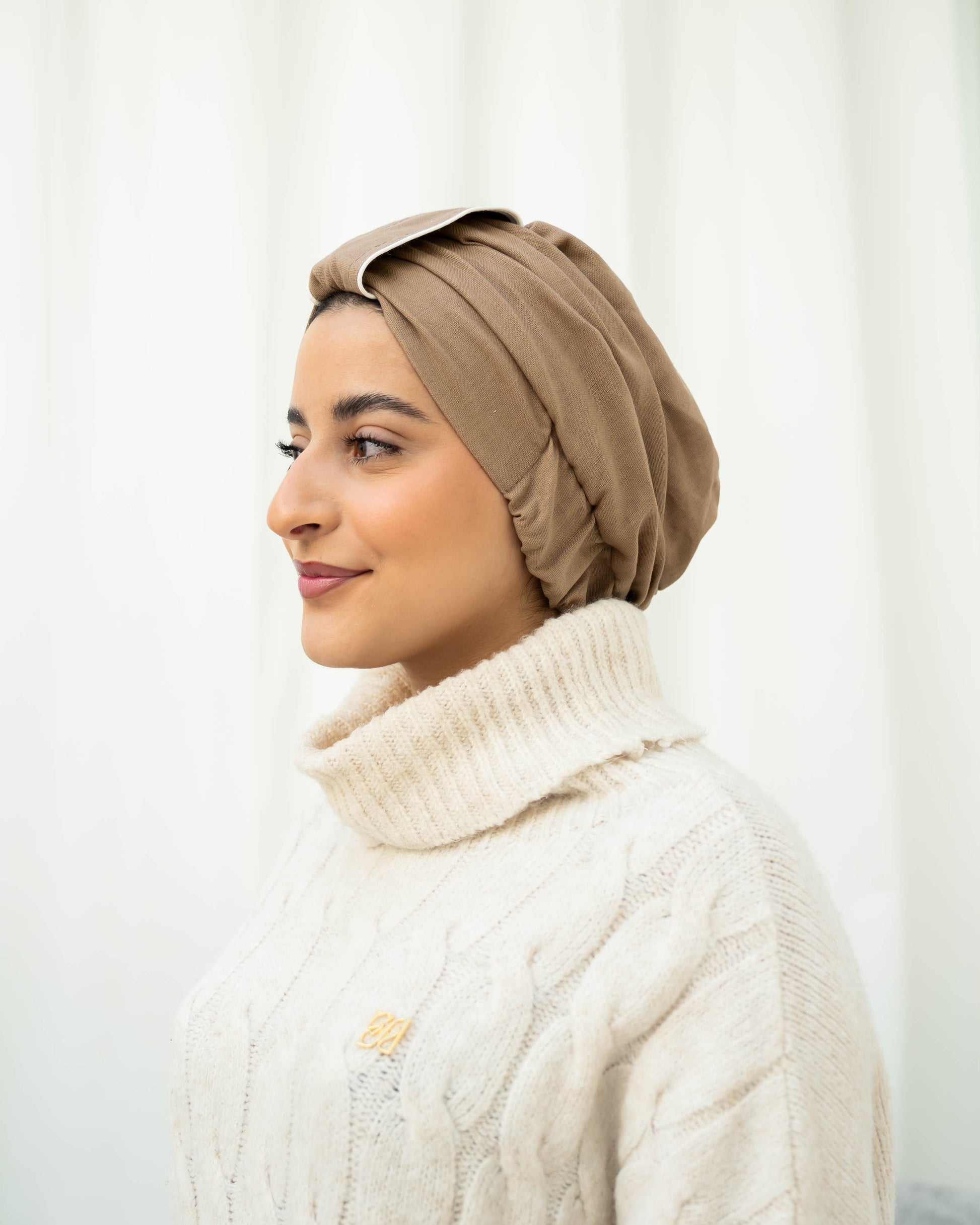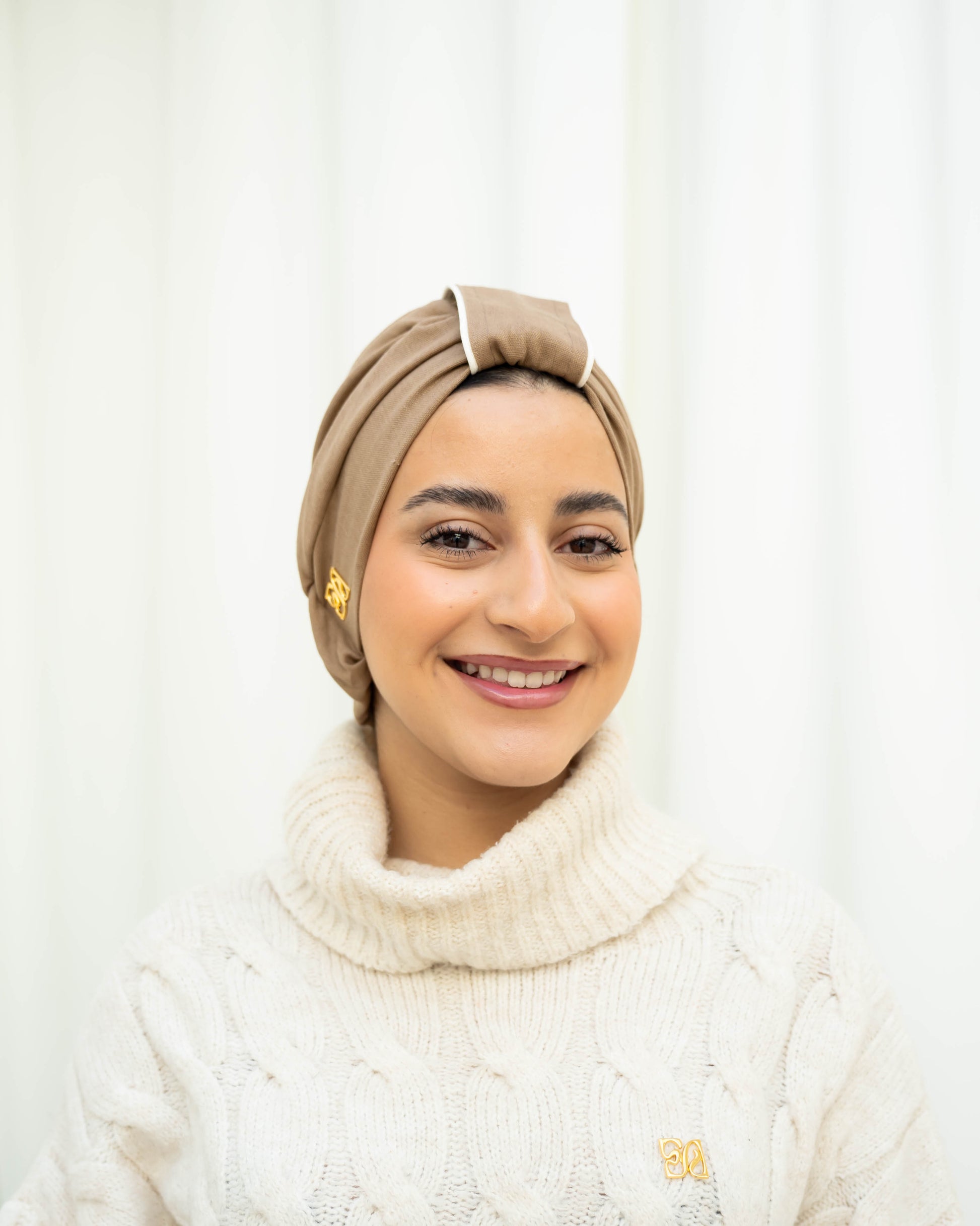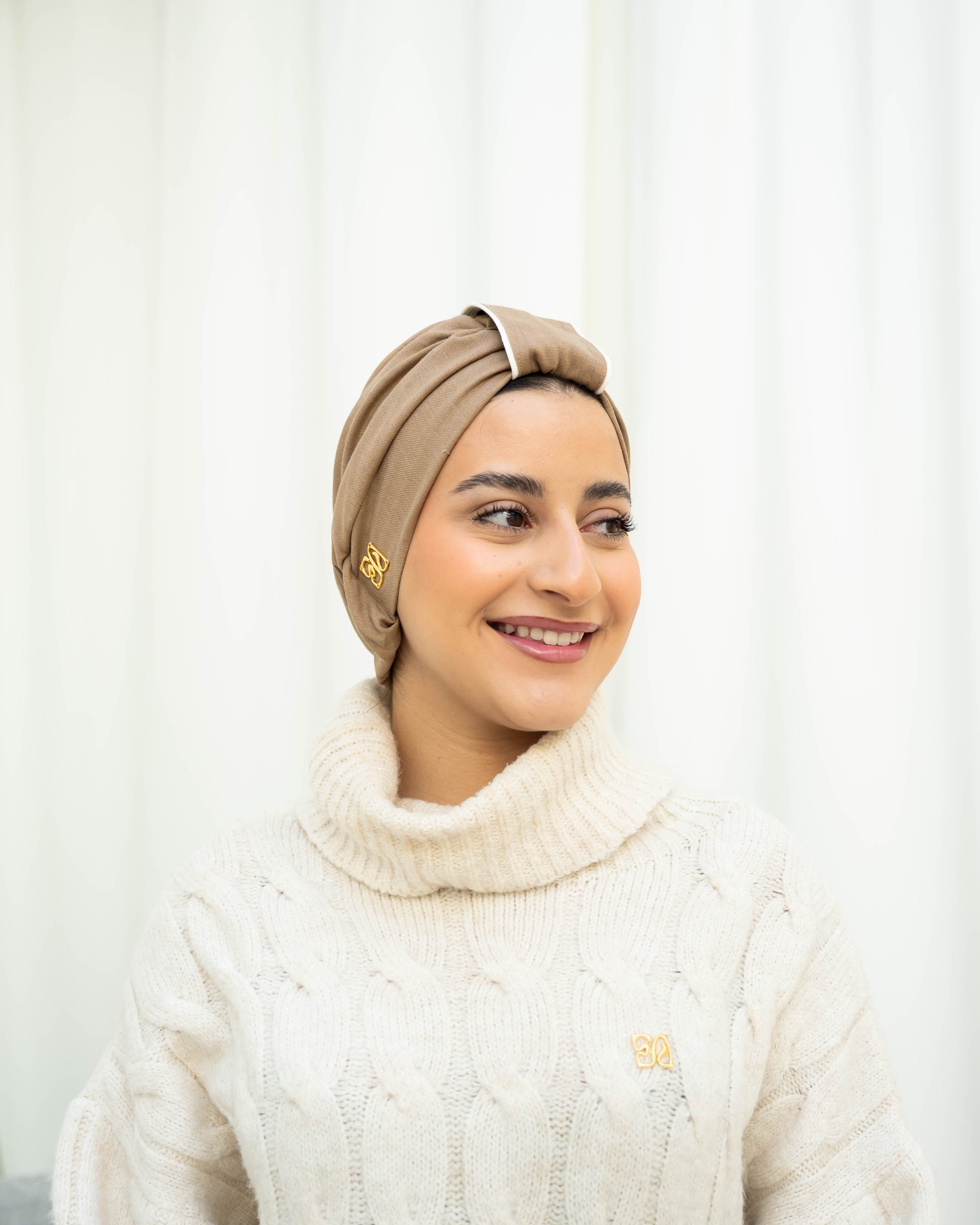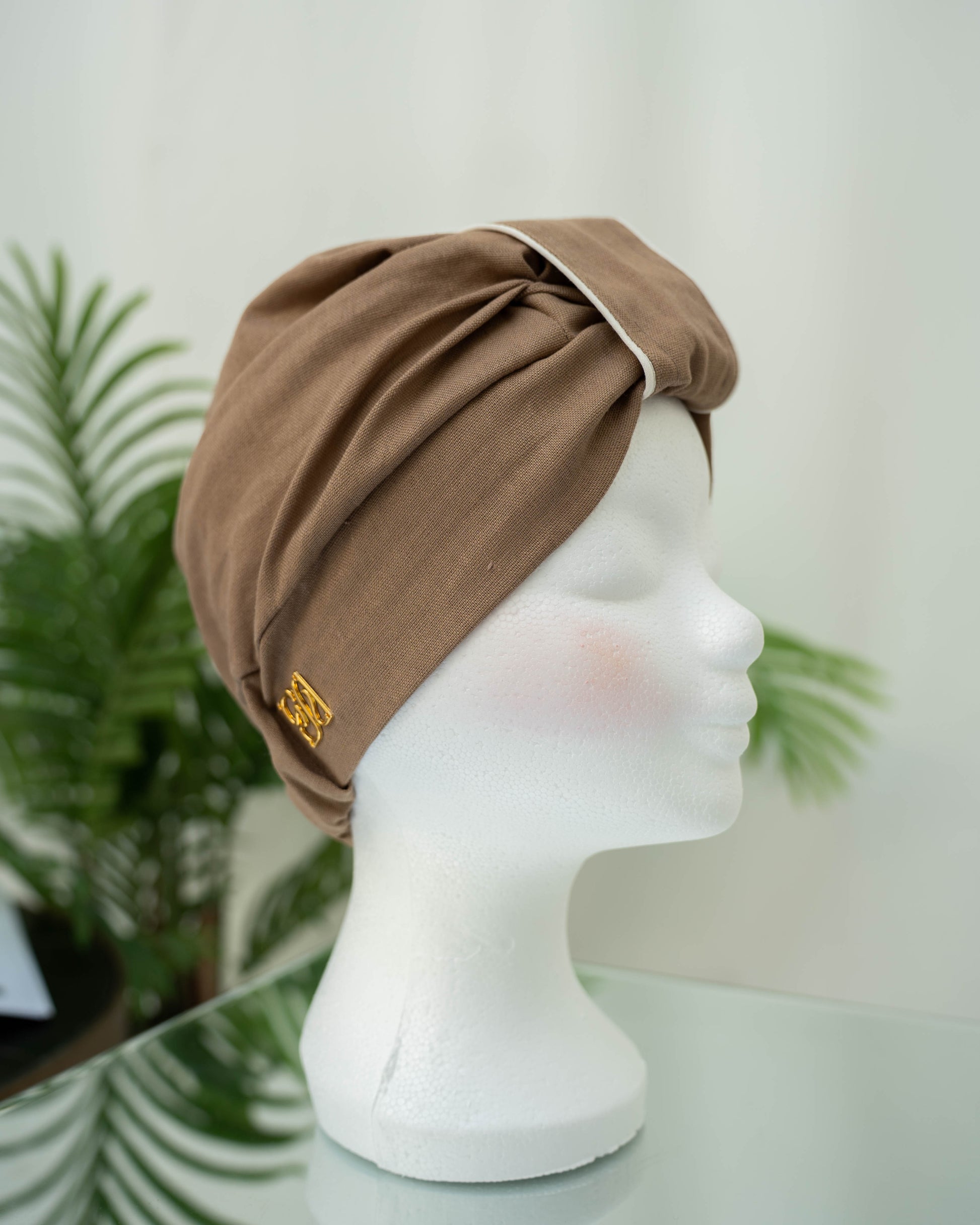 Elevate your style effortlessly with this beautifully designed taupe turban, perfect for both casual and formal occasions. The turban is crafted from high-quality, soft, and breathable fabric, ensuring all-day comfort while maintaining its sophisticated look. Its timeless taupe color is complemented by a delicate white trim, adding a modern and minimalist touch to the design.