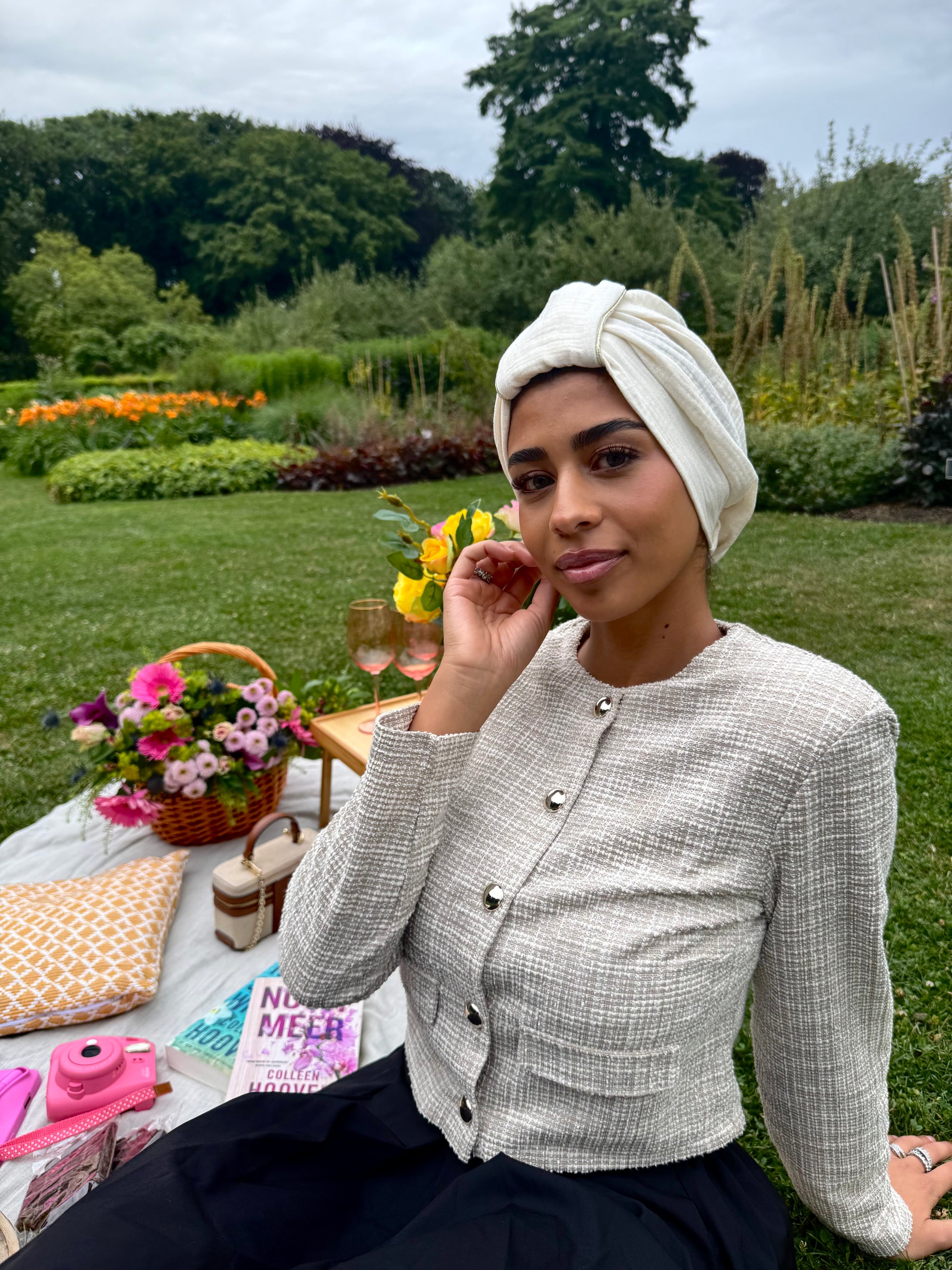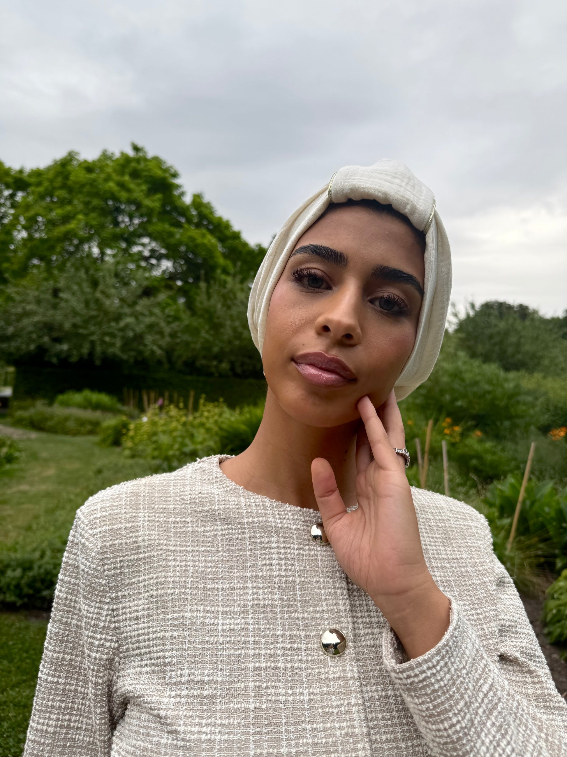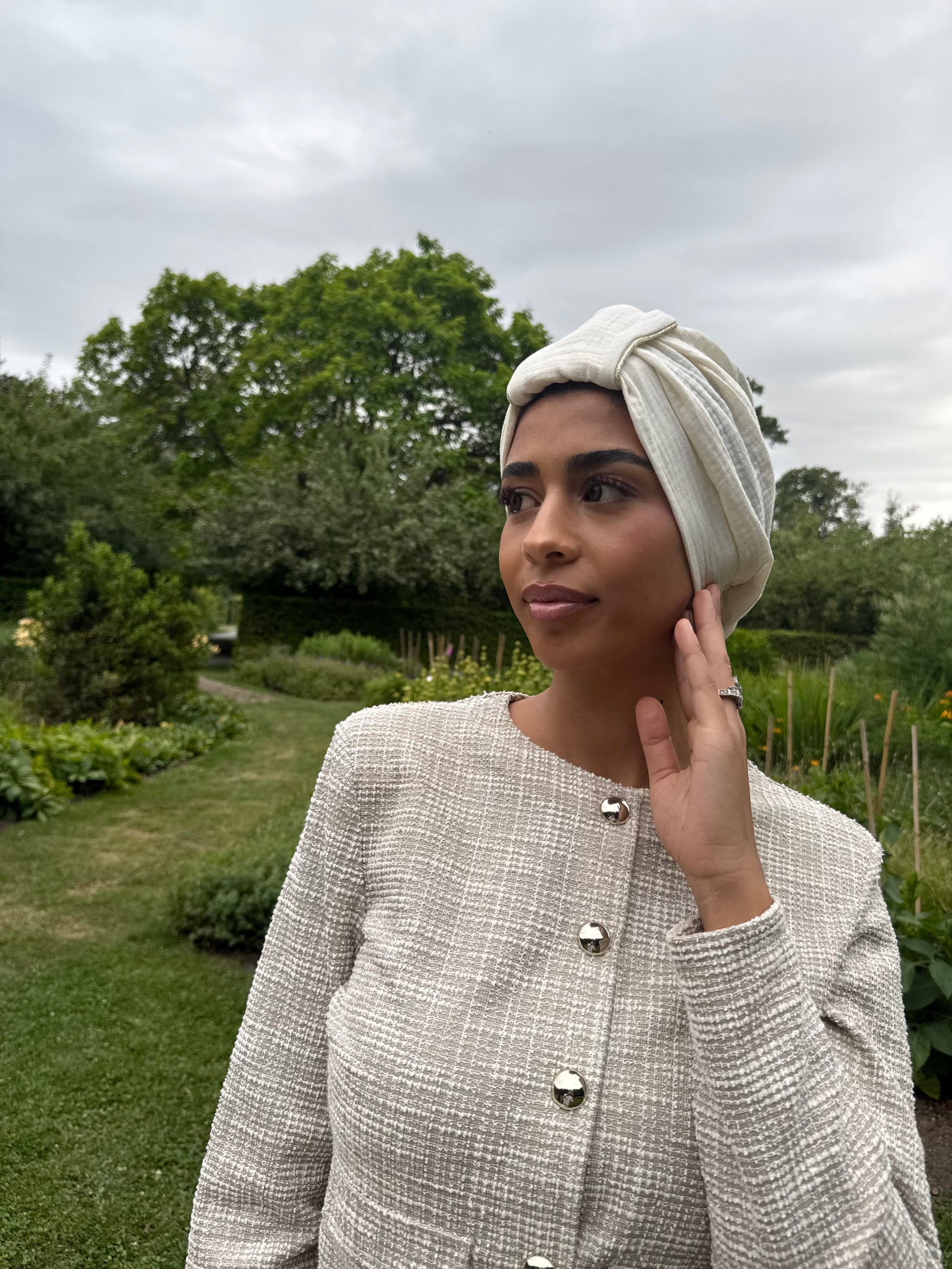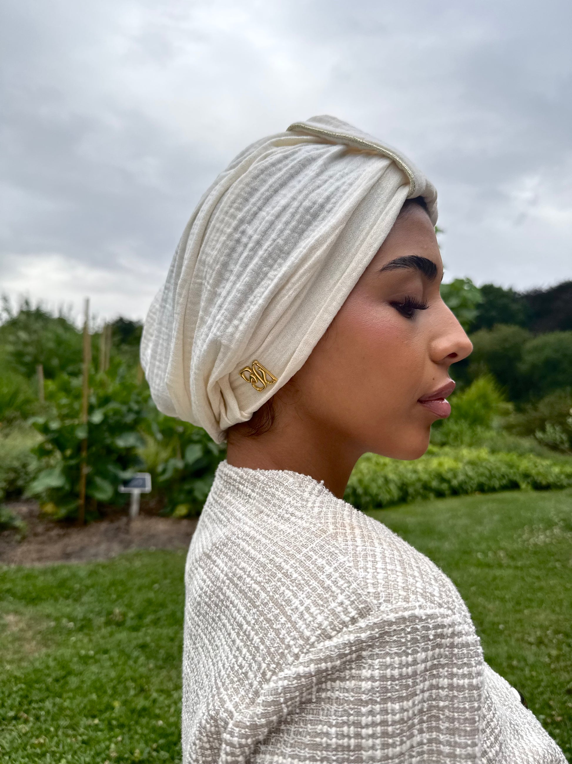 Elegant, soft and minimal — the Luz de Luna turban brings a gentle glow to your outfit.