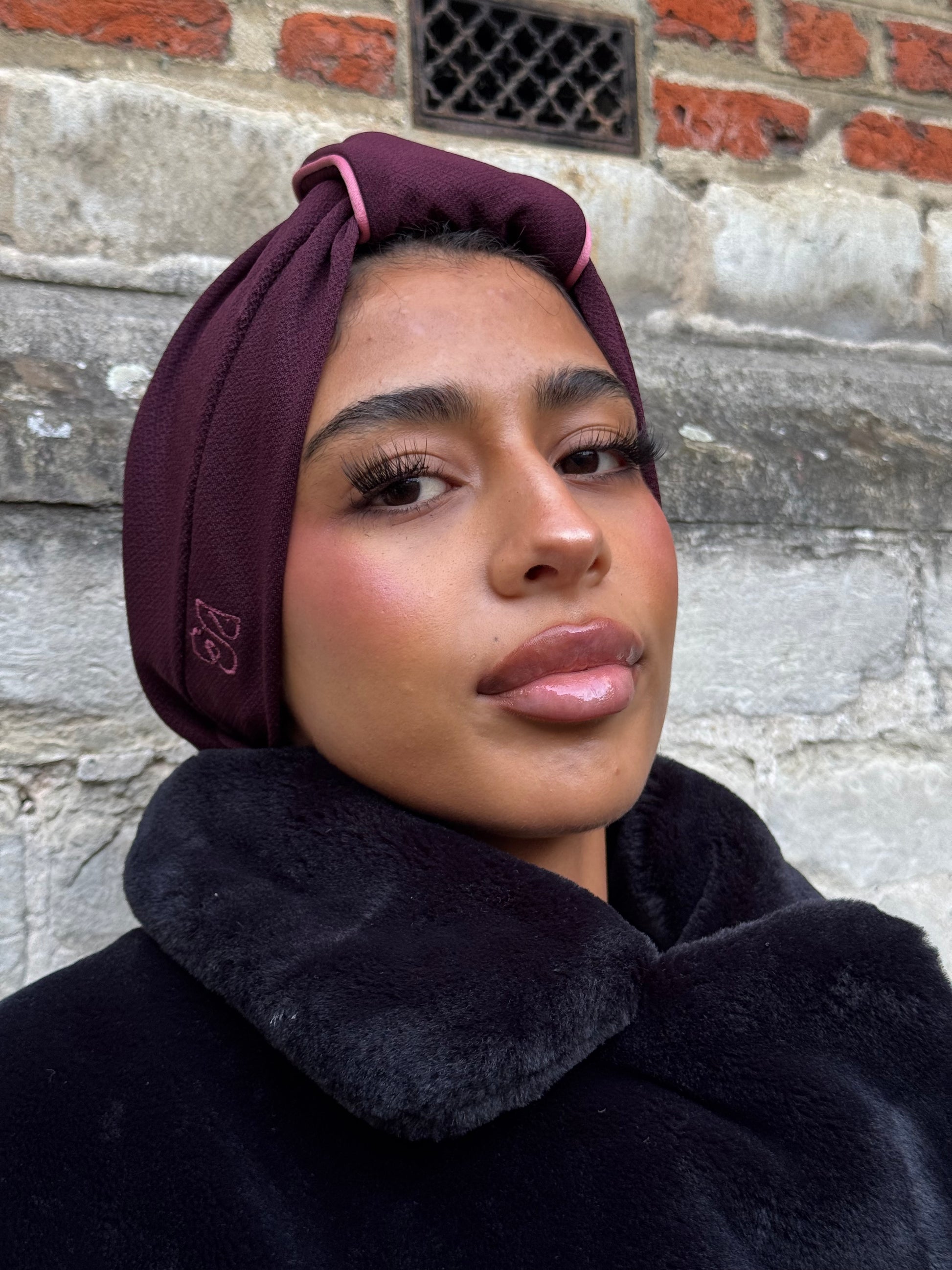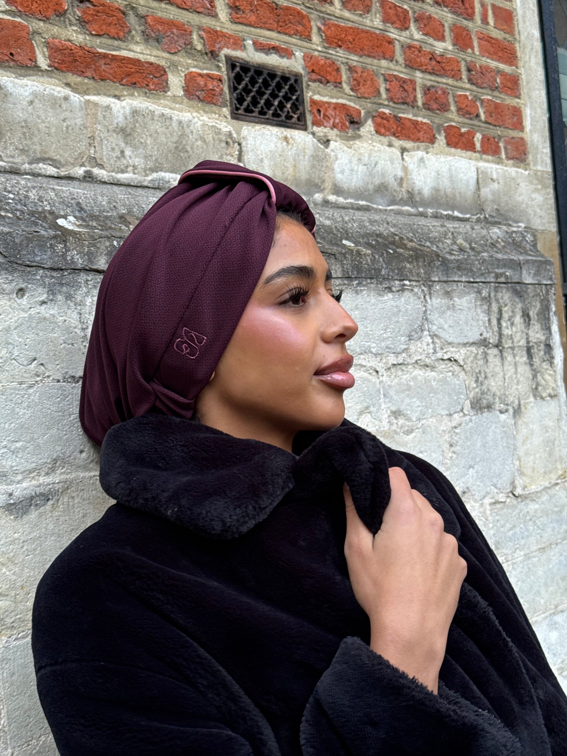 Deep, rich and softly structured — the Mora turban brings contrast and confidence with every wear. Its berry-toned base is elevated by a soft pink edge, creating a subtle two-tone look that catches the eye without overwhelming. Pre-shaped and easy to style, this turban adds effortless elegance to any outfit.