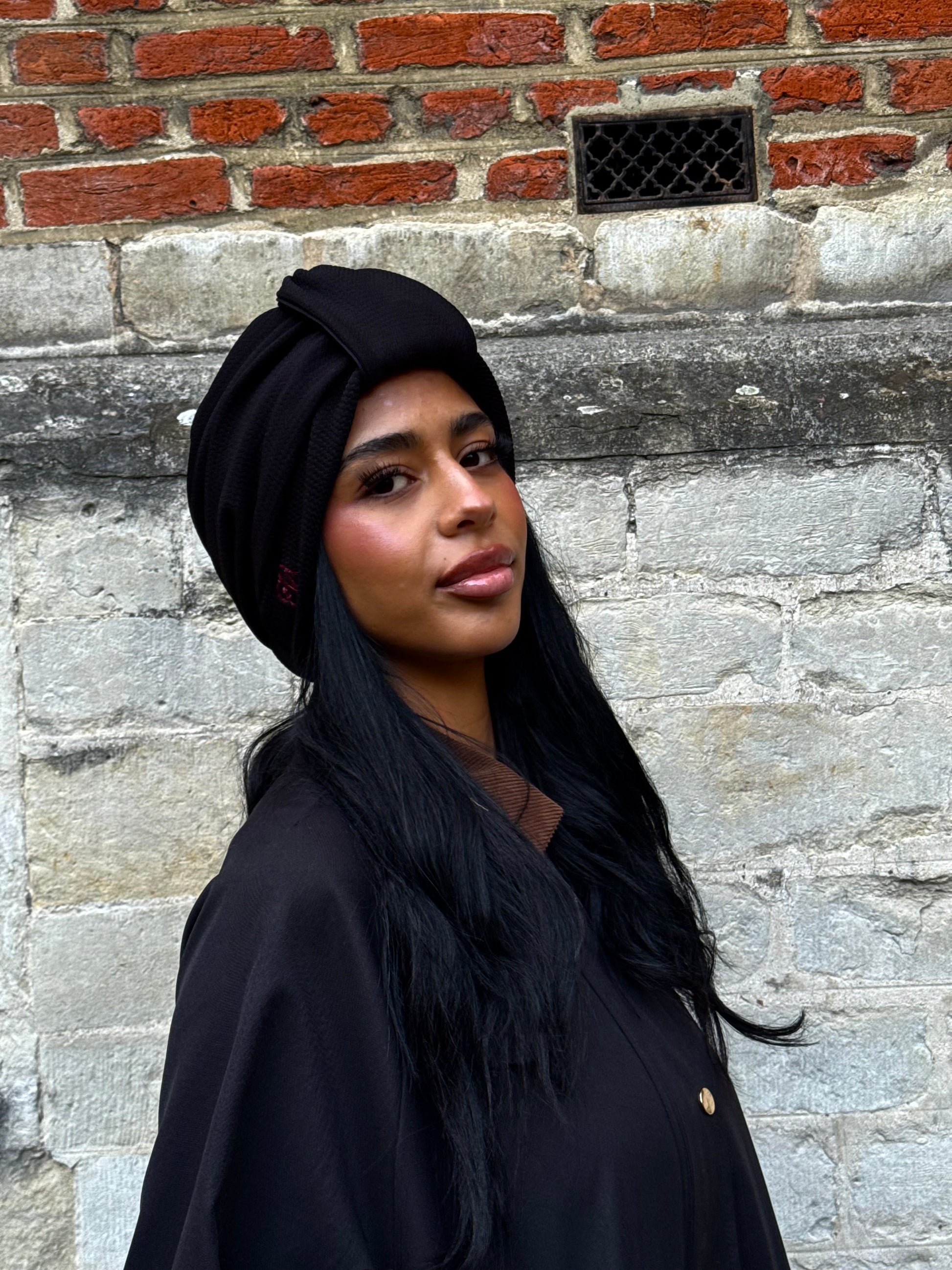 Bold yet understated — the Onyx turban embodies the quiet strength of nightfall. Its deep black hue evokes confidence and elegance, grounded with a subtle touch of mystery. The textured stretch fabric and rich tone-on-tone embroidery add refinement without effort.