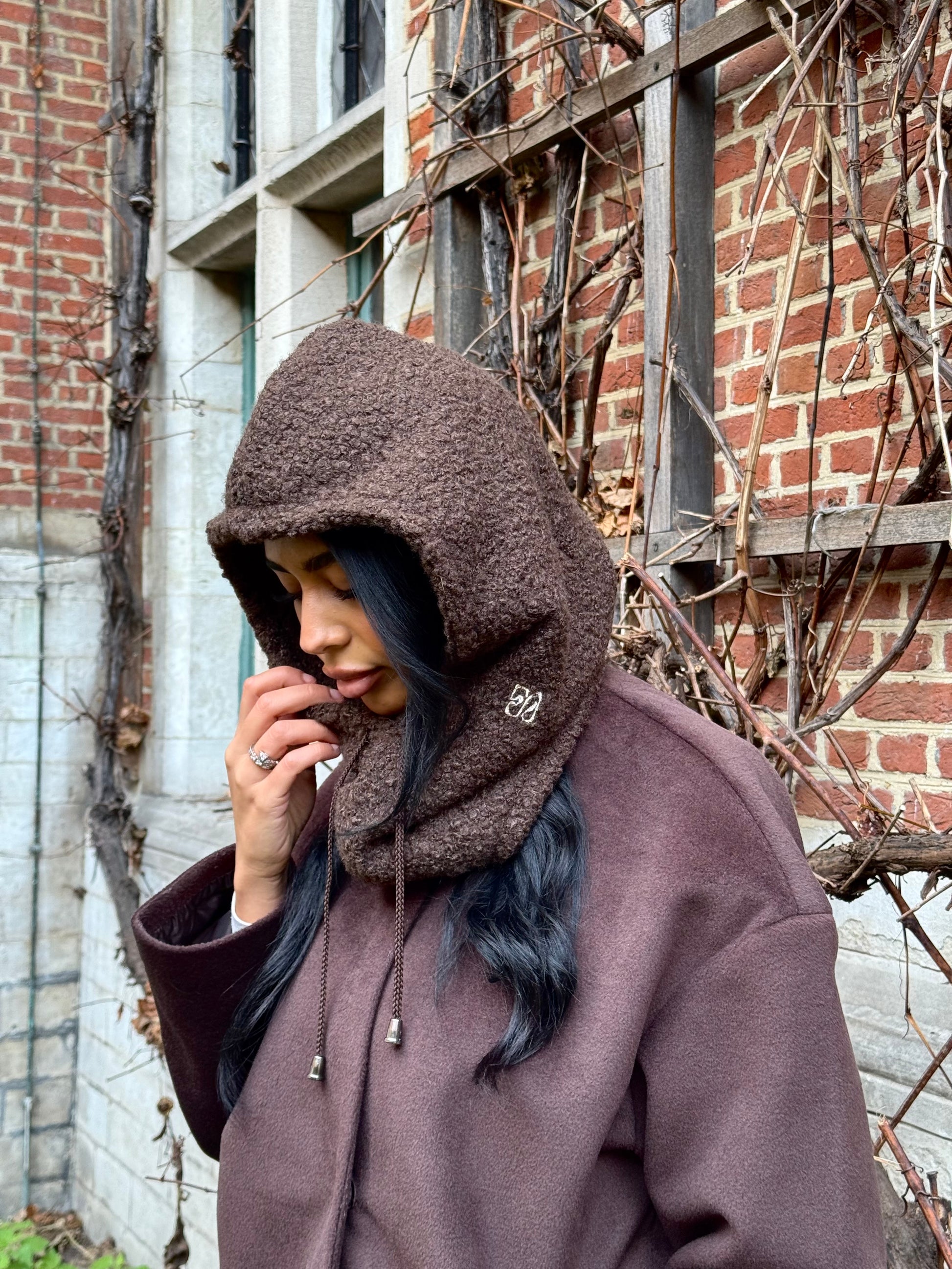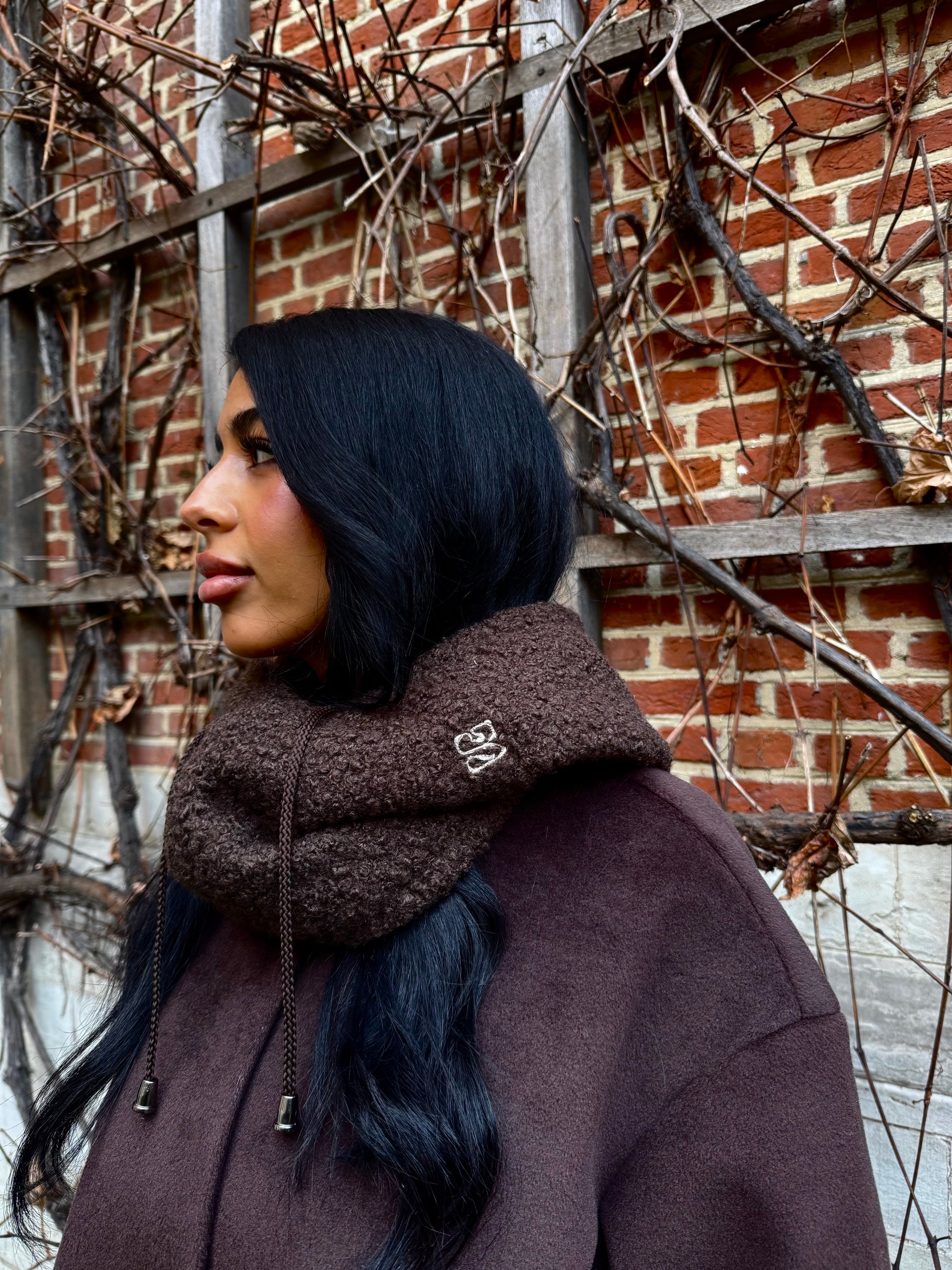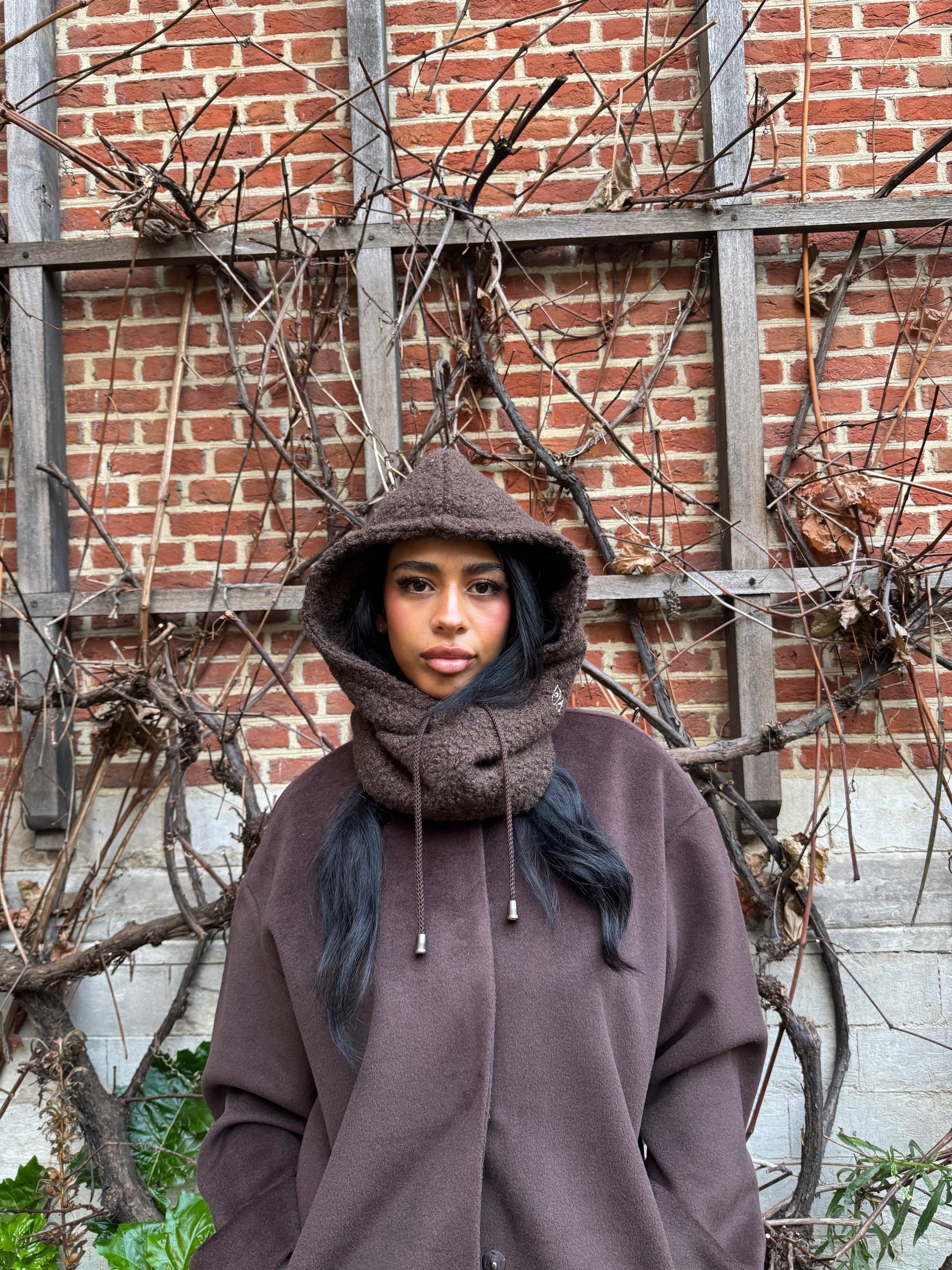 Structured softness meets timeless form — Sombra is your all-in-one hooded scarf for colder seasons. With its deep chocolate tone and tactile texture, it brings both comfort and presence. Designed to wrap gently and hold securely, this piece speaks to subtle strength and grounded elegance.