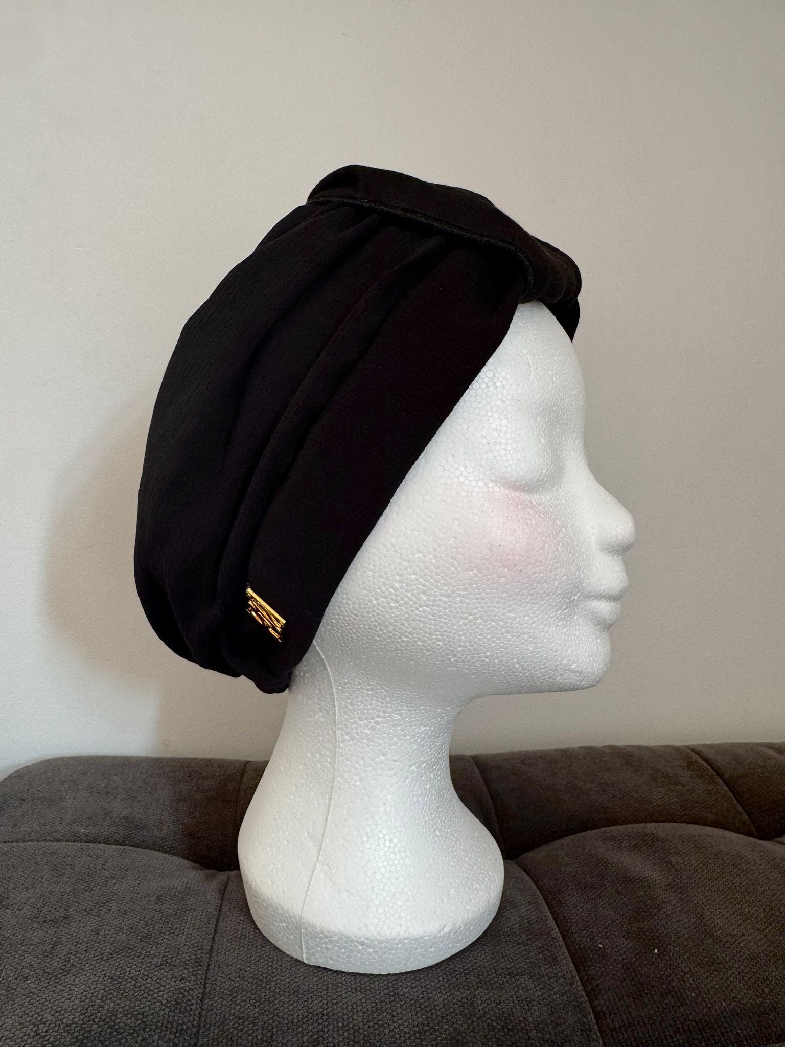 Soft, lightweight and effortlessly chic — the Sombra Negra turban is made to elevate any outfit with minimal effort. Its flowy fabric and deep black tone offer a clean, polished look that works from day to night. The pre-shaped design gives you instant style and all-day comfort — no pins, no fuss.