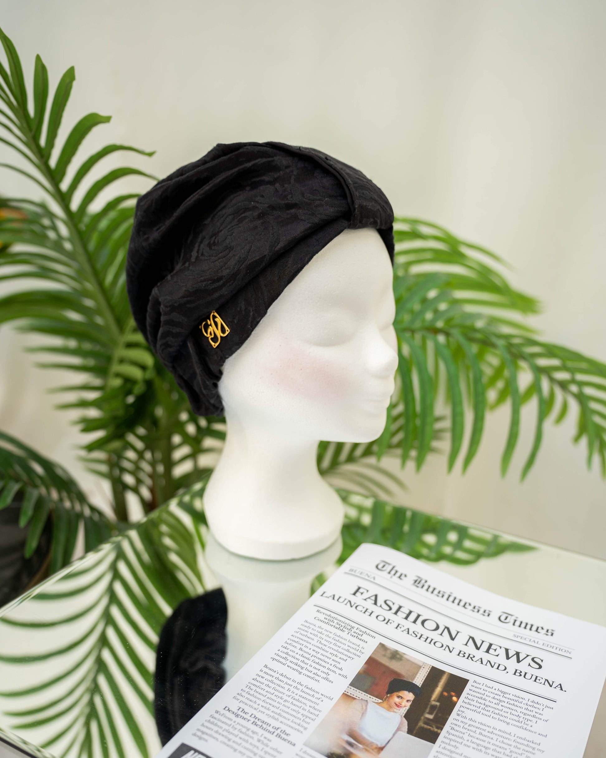 Enhance your look with this elegant black turban, designed for timeless sophistication and versatility. Made from premium fabric with a subtle textured pattern, this turban exudes refinement and is perfect for both everyday wear and special occasions. The intricate tonal design adds depth and dimension, giving it a luxurious finish.